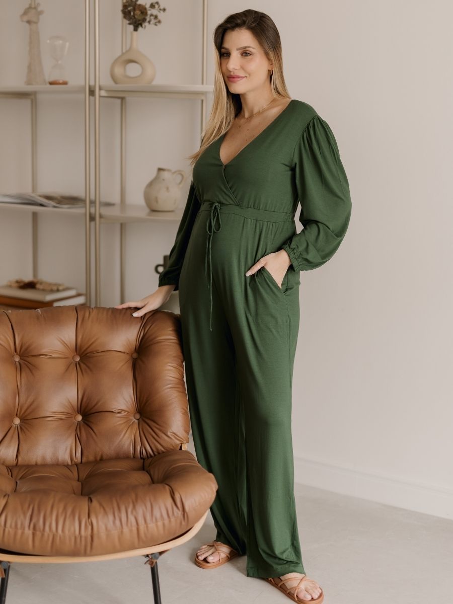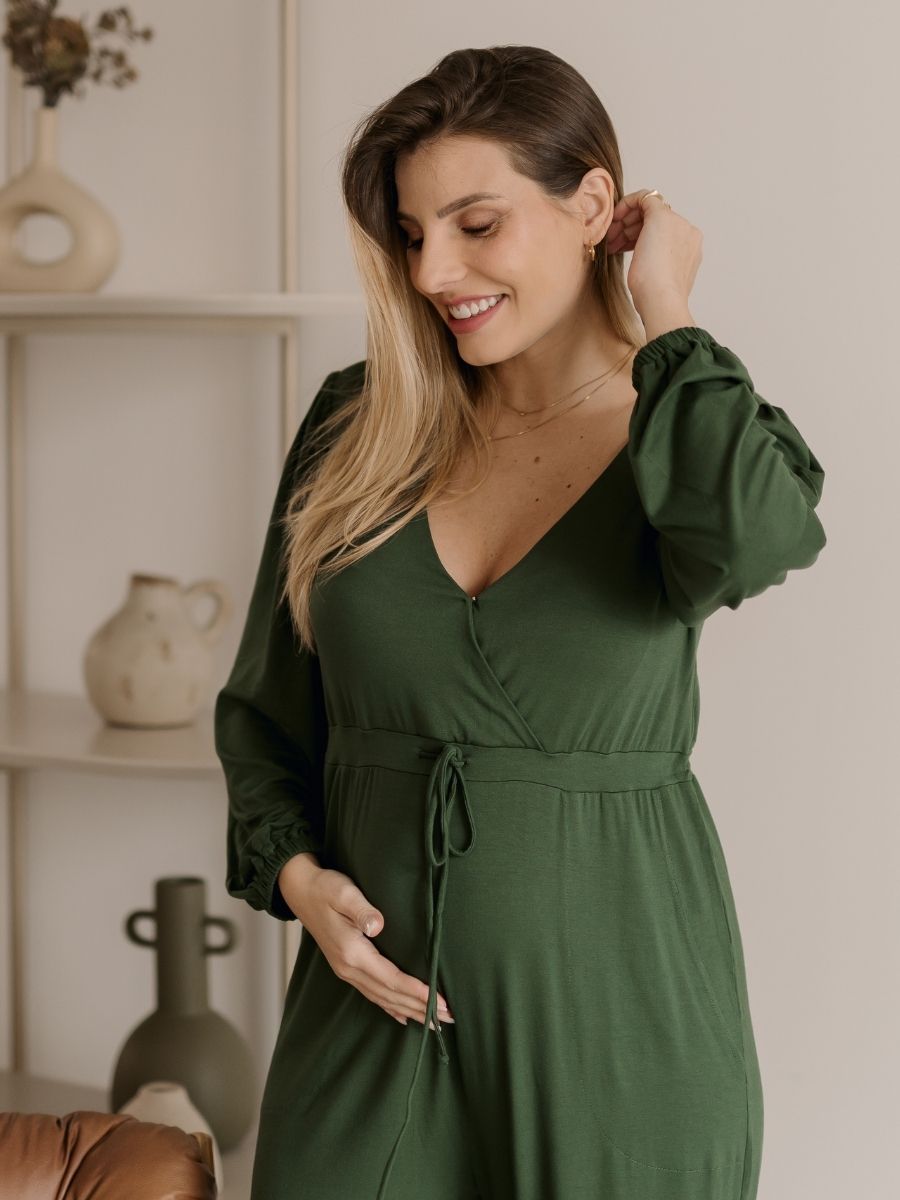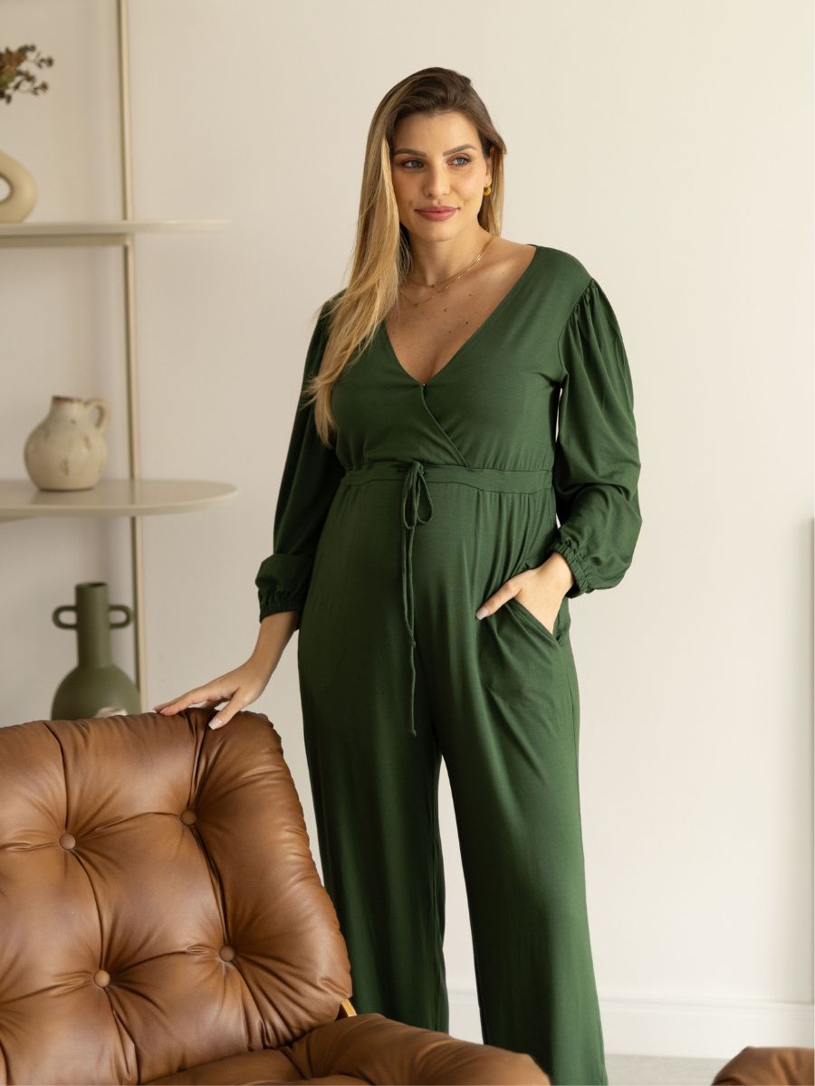Macacão Gestante e Amamentação Transpassado Manga Longa